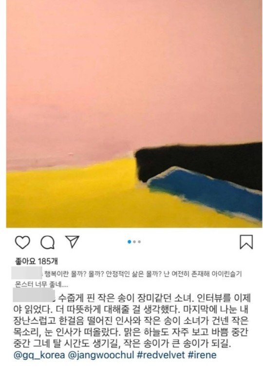 다만 해시태그만으로 섣부른 추측과 과한 해석을 경계해야 한다는 의견도 팽배합니다. 과거 A 씨는 아이린과 작업한 후 "수줍게 핀 작은 송이 장미같던 소녀. 큰 송이가 되길"이라고 후기를 남기기도 했습니다.