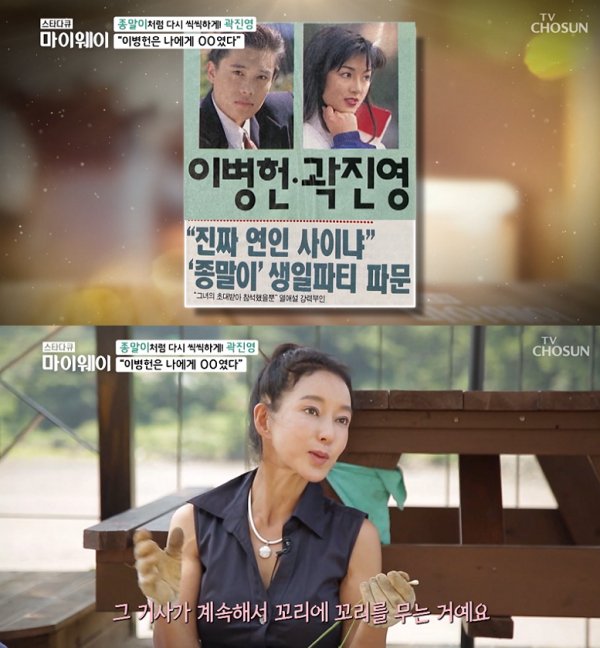 곽진영은 “어느 날 곽진영, 이병헌 연인 사이 파문해서 기사가 났다. 그때 동건 씨도 왔고 박세준 오빠도 왔었다. 그 기사가 계속 꼬리에 꼬리를 물었다”고 털어놨습니다.