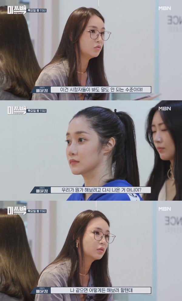 배윤정은 "걸그륩 출신이고 활동했던 애들이라 기대를 많이 해서 모르겠는데 이건 시청자들이 봐도 말도 안 되는 수준이다"라며 "우리가 뭔가 해보려고 다시 나온 거 아니냐. 그러려면 미션이 주어지면 나 같으면 어떻게든 해보려 할 텐데 할 의욕이 없는 사람들과는 하고 싶지 않다. 솔직히"라고 독설을 날렸는데요.