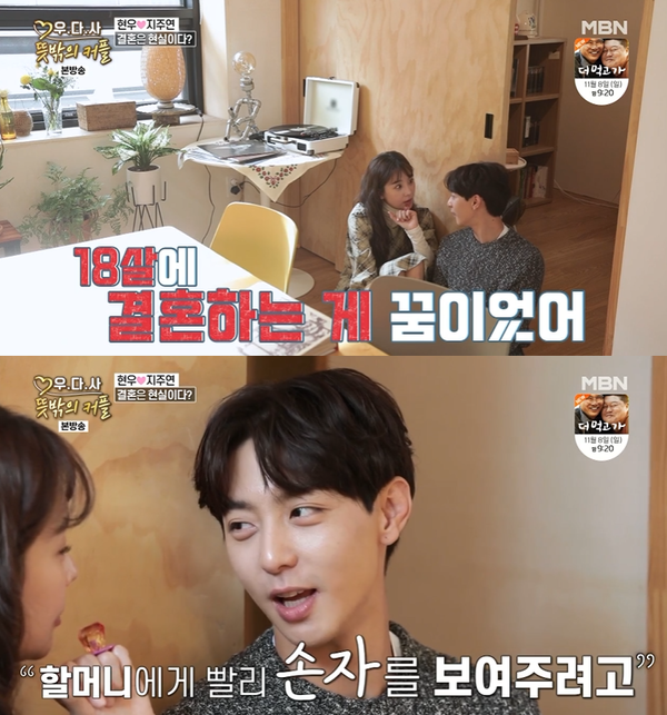 이날 지주연은 현우에게 “어떤 남편이 되고 싶으냐”고 질문을 던졌습니다. 이에 현우는 “내가 추구하는 건 물론 싸우는 상황이 올 거다. 그때 대화로 많이 풀고 이야기를 잘 나누는 남편이 되고 싶다. 어딘가 부족하지만 내가 그걸 채워줄 수 있는 남자가 되면 좋을 것 같다”고 바람을 전했습니다.
