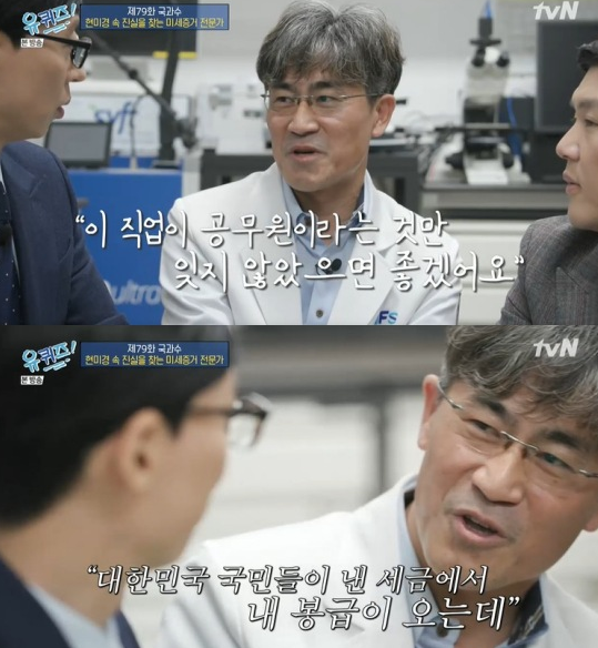 4일 방송된 tvN ‘유 퀴즈 온 더 블록’에서는 국과수 미세증거 전문가 이동계 연구관이 출연해 이야기를 나눴습니다.