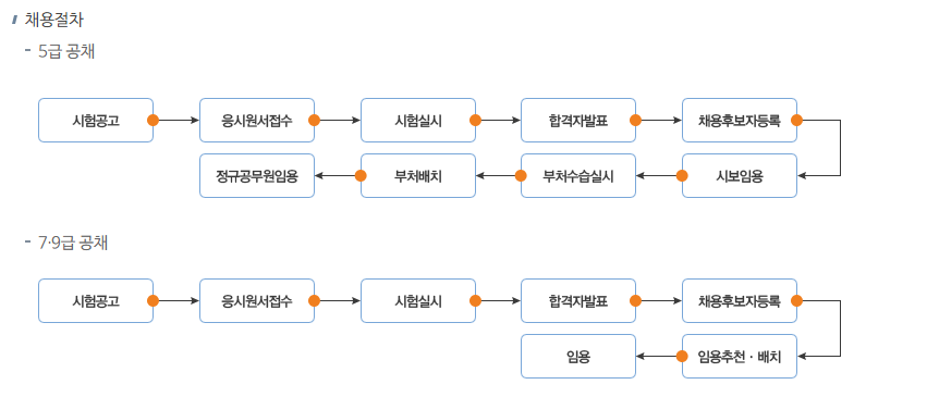 5급 공채는 인사혁신처장에서 진행됩니다. 7·9급 공채는 인사혁신처장과 소속장관에서 진행됩니다.