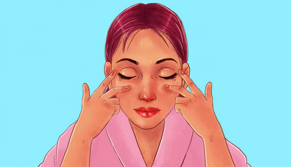 눈가를 마사지하면 눈꺼풀이 붓는 것을 예방할 수 있다. 우선 검지와 중지로 눈 아랫부분을 살짝 쓰다듬는 동작으로 시작한다. 눈가가 따뜻해지면 마사지 효과가 더욱 좋아진다.