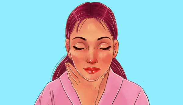페이셜 마사지는 자극적이거나 아프지 않아야 한다. 에센셜 오일이나 모이스처라이저밤을 얼굴과 목에 충분히 바른다.