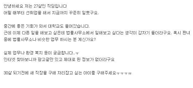 | [진로고민] 헤어디자이너 vs 9급 공무원 어느쪽을 택해야 할까요 (0) | 2020.11.23 |