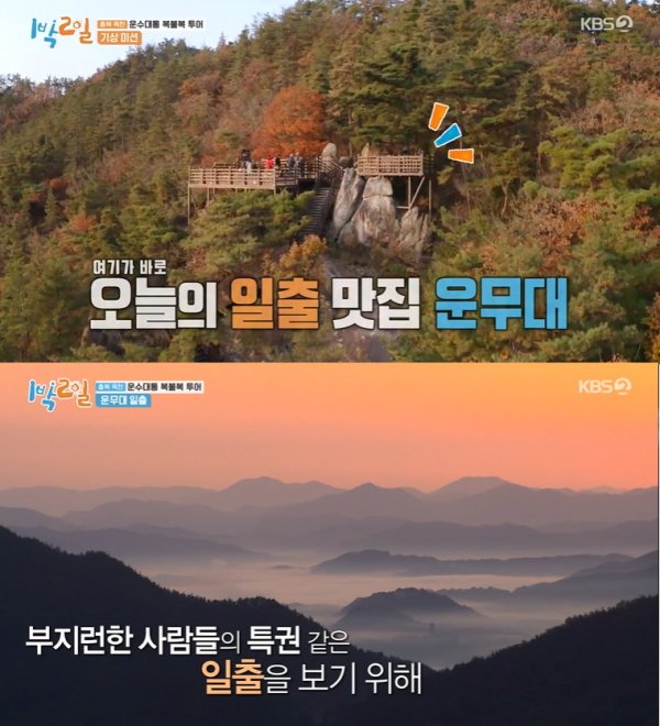 두 사람은 끝없이 이어지는 계단을 올라 일출 맛집 운무대에 도착했습니다. 김선호는 “올라오니까 보람차다”고 눈을 떼지 못했고 문세윤 또한 “남들보다 부지런해야 볼 수 있는 벅찬 감동을 느끼기 위해서 다 올라왔다. 너무 멋있다”고 감탄했습니다.