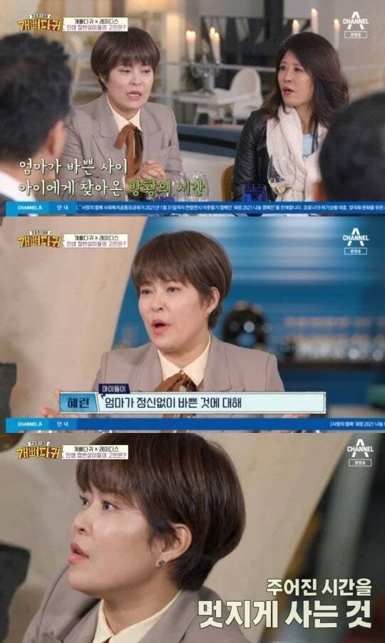 첫째 딸이 21살, 둘째 아들이 19살이라는 조혜련은 "딸이 중3 때까지 전교 1등을 했던 아이인데, 명문고에 들어가자마자 두 달 뒤에 학교를 그만뒀다"며 "이후 1년 동안 집에만 누워만 있었다"고 고백했다.