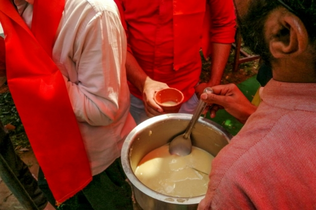 AFP통신 보도에 따르면, 힌두교 정당이 불 앞에서 힌두교 의식을 행하면서 소 오줌을 마시는 파티를 진행했다.