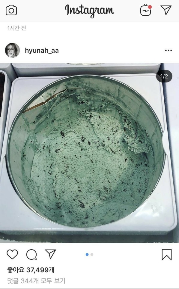 현아는 1년 2개월 만에 I'm not cool'로 컴백하며 일과 사랑을 모두 잡은 스타로 통하고 있다. 그녀 역시 인스타그램에 민트 초콜릿 칩 아이스크림 사진을 업로드한 바 있다.