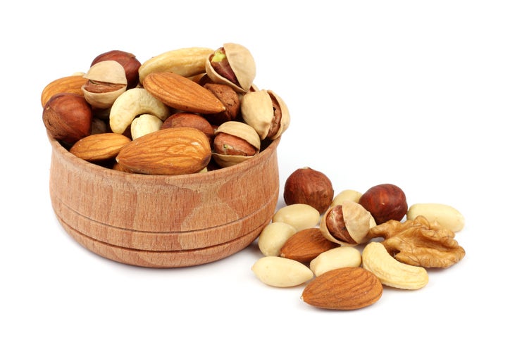 아몬드, 호두, 땅콩 등 견과류를 지방 덩어리로만 여겨 다이어트 때 피하는 사람이 꽤 있습니다. 하지만 이런 지방은 몸에 좋은 성분들입니다. 견과류에는 식이섬유가 많아 쾌변을 유발함으로써 비만 예방에 좋습니다. 또한 간식으로 견과류를 먹으면 배고픔을 덜어줘 과식을 예방합니다. 다이어트 전문가들은 일부러 굶지 말고 견과류를 자주 먹으라고 조언합니다.