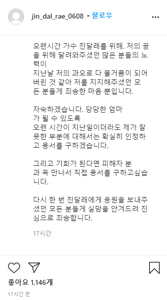 또한, 진달래를 믿고 응원해 주신 모든 분들께 걱정과 심려를 끼쳐드린 점 다시 한번 사과드립니다.