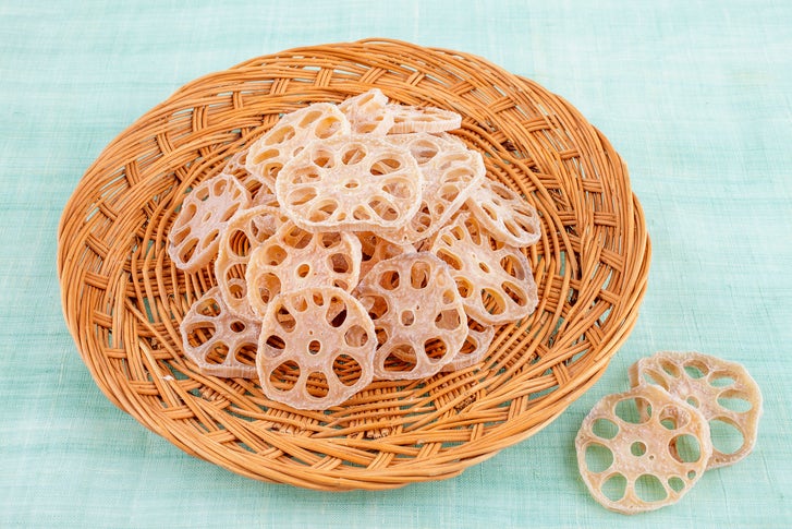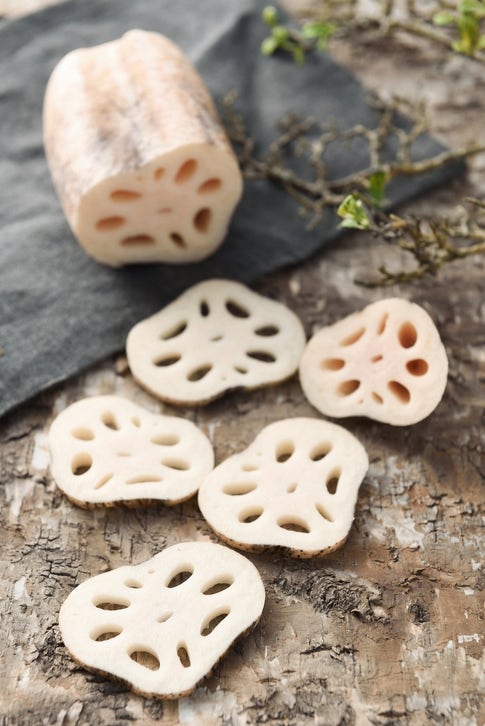 주성분은 탄수화물이며 식물성 섬유도 풍부하게 들어 있습니다. 조림, 전, 튀김 등 여러 요리에 쓰이며, 말린 연근은 차로 마시거나 생즙으로 갈아 그대로 마셔도 맛이 좋아 다양하게 즐길 수 있는 식재료죠.