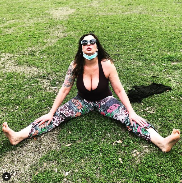 숨을 내쉬면서 오른쪽 발꿈치를 엉덩이 쪽으로 가져오도록 구부립니다. 이 때 몸은 전체적으로 오른쪽으로 절반 정도 열리게 됩니다. 심호흡을 두 차례 하면서 이 자세를 유지 한 뒤 숨을 내쉬면서 부드럽게 시작 자세로 돌아옵니다. 방향을 바꿔 실시합니다.
