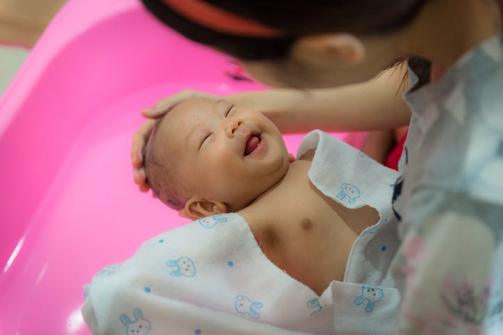 신생아는 태어난 후 2~3일 뒤에 첫 목욕을 하는 것이 좋습니다. 예전에는 아기의 몸에 묻은 혈액 등을 제거하기 위해서 태어난 직후에 목욕을 하는 것이 일반적이었습니다. 하지만 요즘은 오염 물질이 묻은 경우만 아니면 수건으로만 살살 닦아 주는 추세입니다. 태어난 직후에 목욕을 하게 되면 신생아 피부가 약해질 수 있기 때문입니다.