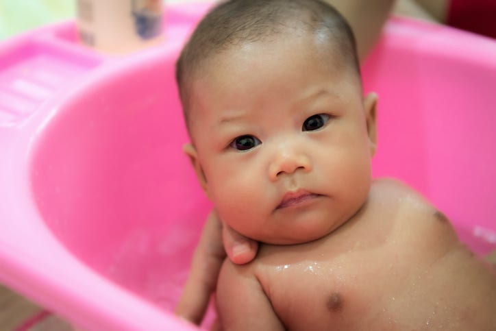 목욕을 매일매일 시키지 않으면 몸이 근질거려 참지 못하는 엄마들이 간혹 있는데 목욕을 너무 자주 시키면 아기의 피부가 건조해질 수 있어요. 땀을 많이 흘리는 계절에 매일 물로 씻겨 주는 것은 상관없습니다.