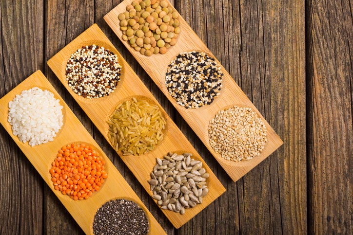 쌀, 보리, 귀리, 콩, 조, 밀, 기장 등의 곡물의 겉껍질만 벗긴 것을 통곡물이라고 합니다. 식이 섬유소와 복합 탄수화물이 많이 들어있는데, 식이섬 유소는 신진대사를 증진시키는 역할을 합니다.