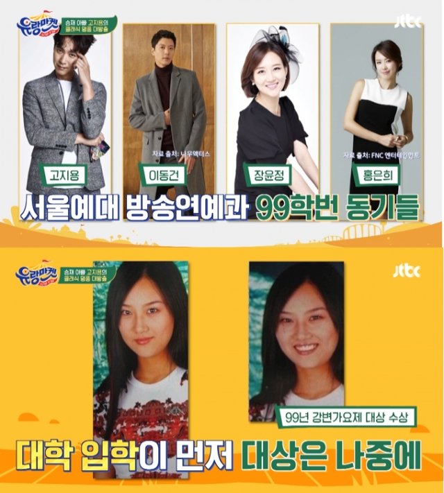 장윤정은 “학교 어지간히 안 나왔던 친구들이 고지용, 이동건이다. 동건 씨는 과 동기였는데 저를 알지는 모르겠다”고 덧붙였다. 고지용은 “학교 다닐 때 동건이와 친하게 지냈다”라며 서울예대 방송연예과 99학번 동기로 홍은희 등을 언급하기도 했다.