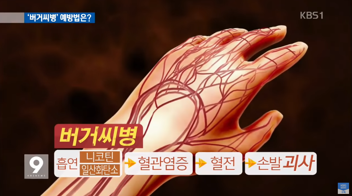 동맥이나 정맥에 염증이 생겨 혈관이 막히는 병인데요. 특히 흡연과 밀접한 관계가 있어 ‘담배병’이라는 별칭도 있습니다. 20~40대 젊은 남자들에게서 자주 발생한다는 버거씨병. 어떤 질환인지 살펴볼까요?