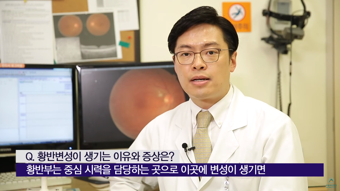 황반변성 증상이란, 시세포가 몰려 있는 황반에 변형이 생겨 눈이 침침해지고, 흐릿한 증상이 나타나는 것입니다.