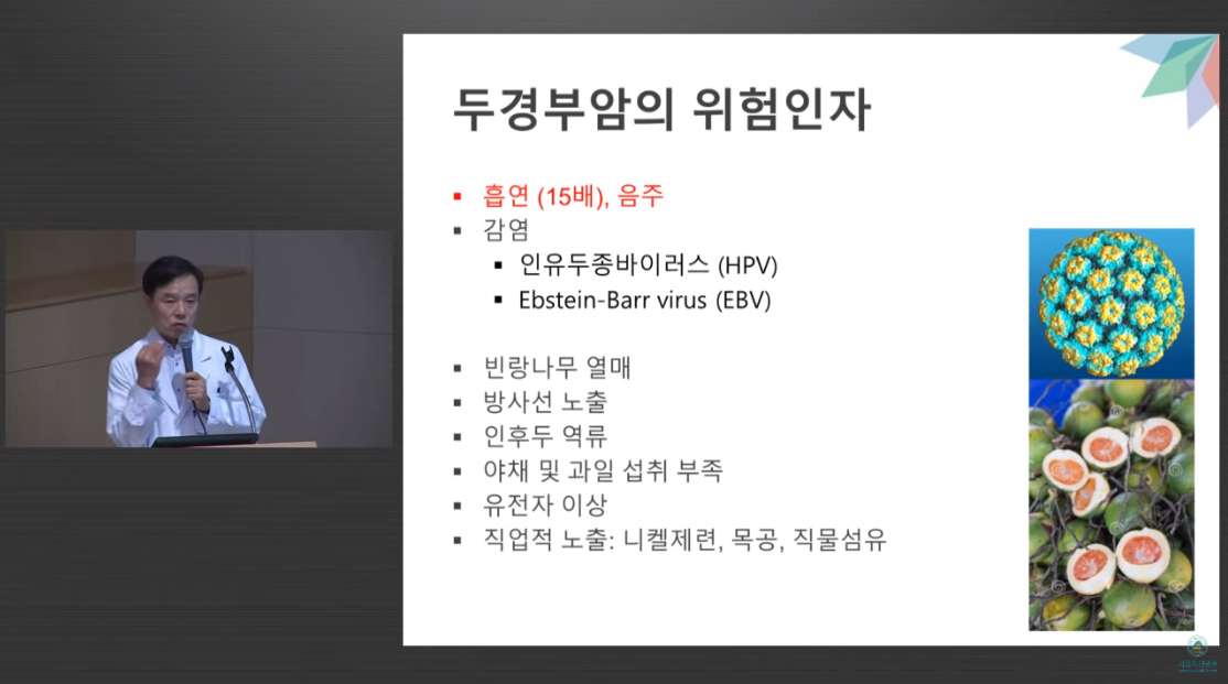 * 이외에 위식도 역류질환, 방사선 및 자외선 노출, 비타민이나 철의 결핍 및 두경부의 물리적 자극 등도 두경부암의 원인이 됩니다.