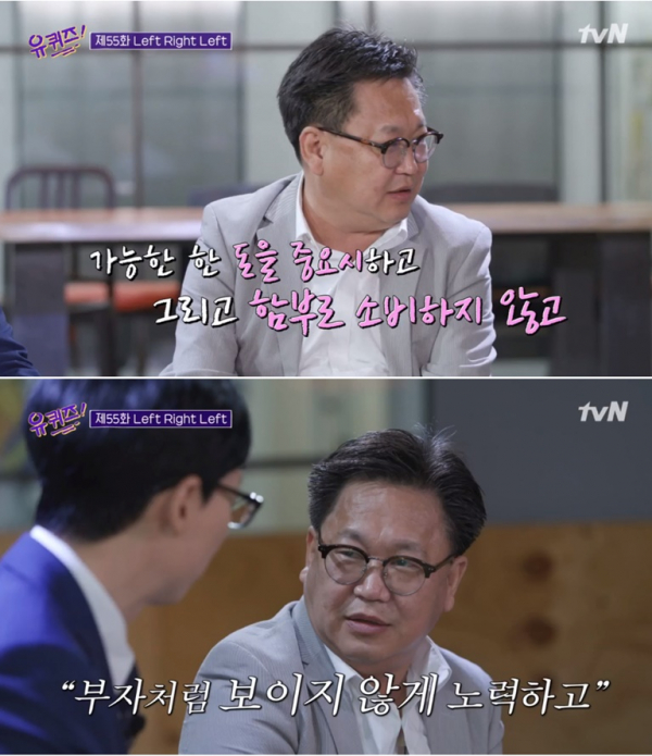 이어 "경제활동에서 소비만큼 중요한 것이 투자다. 소비와 투자가 함께 이뤄져야 한다"며 "과소비가 이뤄지지 말아야 한다. 명품에 몰두하시는 분, 브랜드에 집착하시는 분은 부자가 될 확률이 굉장히 낮다"며 조세호를 보며 이야기했다.
