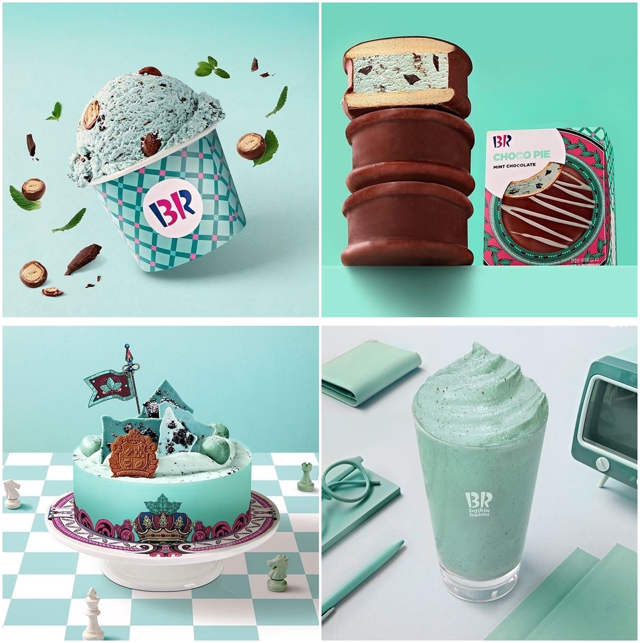 예전부터 많은 민트 초코 제품을 선보인 아이스크림 대표 브랜드 배스킨라빈스. 기본 아이스크림부터 초코파이, 셰이크, 케이크 등 다양한 시도를 하고 있다.