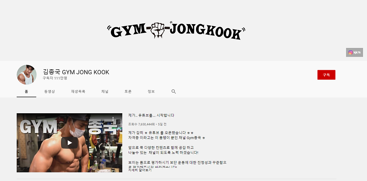 가수 김종국이 유튜브를 개설했다. 김종국은 17일 오후 6시 개인 유튜브 채널 'GYM종국'(GYM JONG KOOK)을 오픈하면서 큰 화제를 불러 일으켰다.