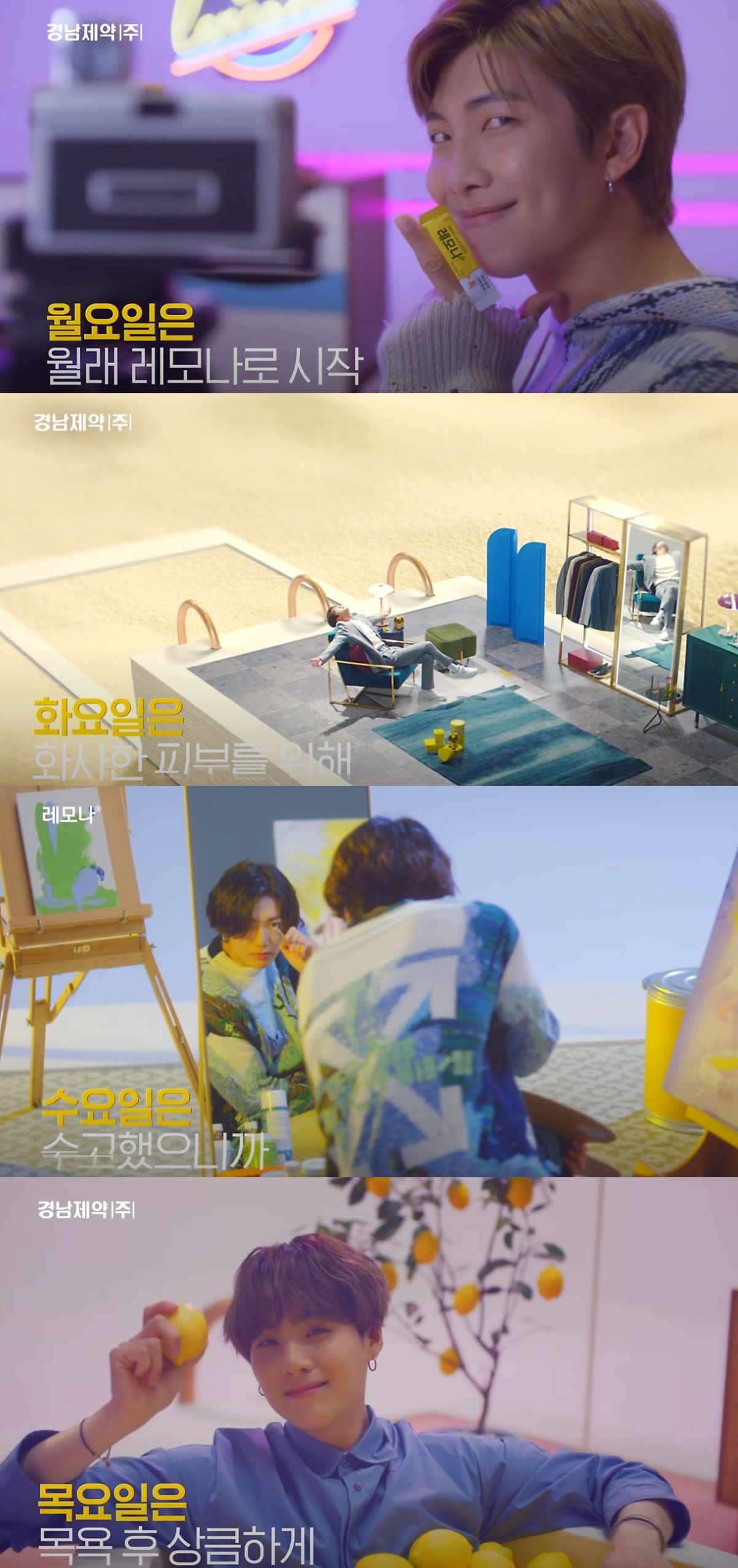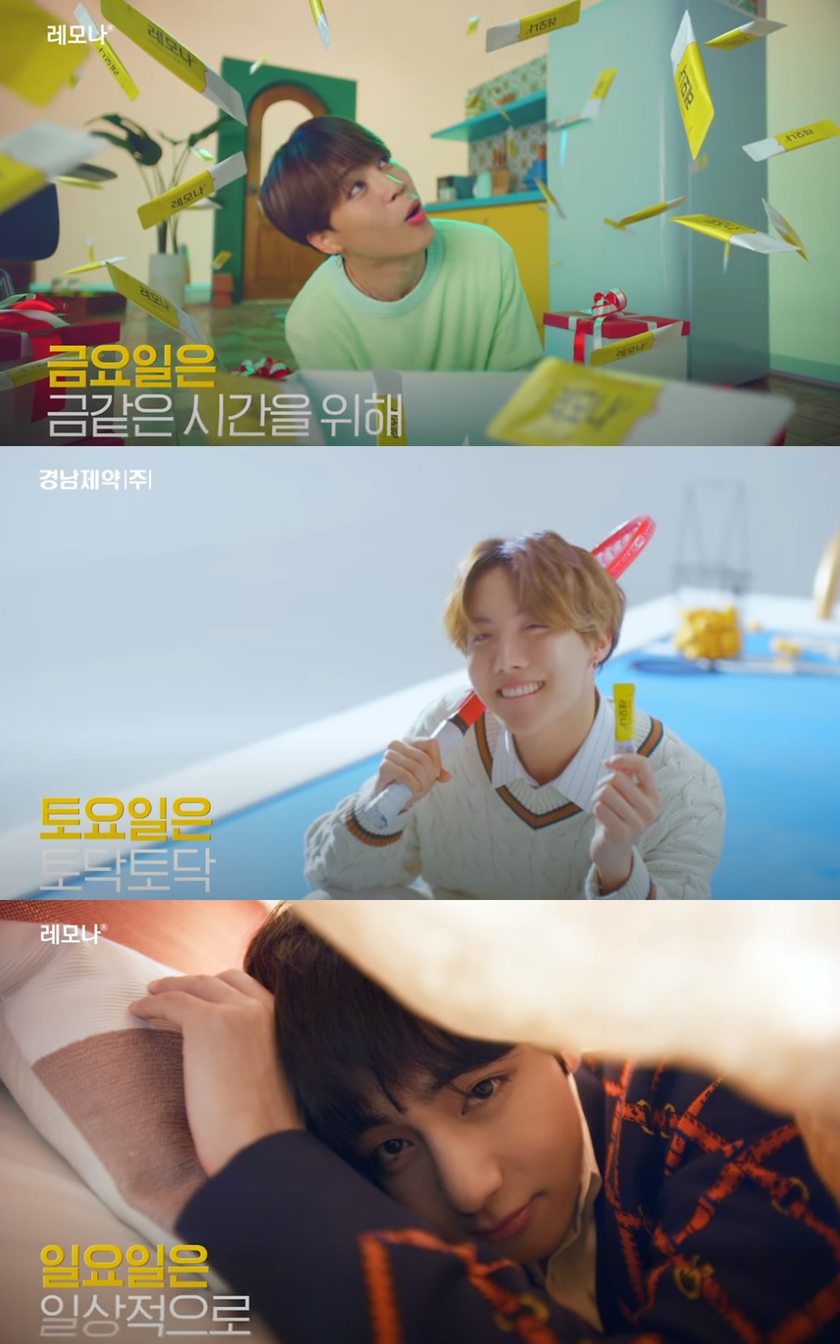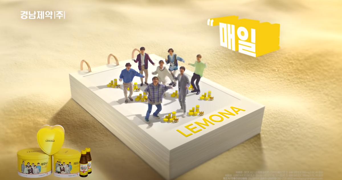 방탄소년단이 레모나 모델이 된 숨은 사연도 있다. 이전부터 방탄소년단 팬인 ‘아미’ 사이에서는 보고만 있어도 피로가 풀리는 '인간 비타민', '인간 레모나'로 불렸다고.