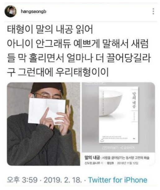 또한 2019년 뷔가 공항에 입국할 당시 들고 있던 책 '말의 내공'은 곧 완판되어 베스트셀러에 오르기도 했다. 출판계 불황 속에서 매출이 급상승한 작은 출판사는 뷔에게 헌정하는 퍼플 에디션을 출시하고 서문에 직접 뷔에게 전하는 감사 인사를 남기기도 했으며, 일본에도 일본어판이 출간되어 베스트셀러에 등극하기도 했다.