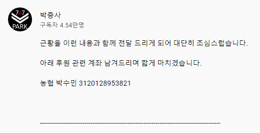 이후 박 중사는 “MBC라는 대형 회사와 개인과 싸워야 하는데 혼자만의 힘으로는 사실 힘든 부분이 있다”며 후원계좌를 공개해 보는 이들에게 당혹감을 안겨줬다.