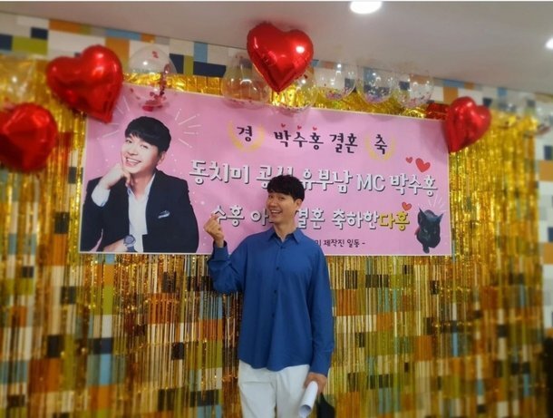 '동치미' 팀은 29일 녹화에 앞서 박수홍에게 깜짝 파티를 열어줬다. '동치미 공식 유뷰남 MC 박수홍, 결혼 축하한다홍'이라는 현수막을 준비한 '동치미' 팀은 박수홍에게 "결혼 축하합니다"라고 노래를 불러줬고, 박수홍은 연신 고개를 숙여 인사했다. 심진화는 자신의 인스타그램에 파티 사진을 올리기도 했다.
