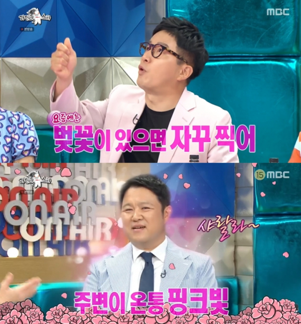 그러면서 “골프를 쳐도 시간 때우다 가고 그런 식이었는데 벚꽃이 있으면 벚꽃 사진을 자꾸 찍는다. 그리고 여자친구한테 보낸다. 사랑의 힘으로 250 메다를 친다”고 말해 김구라를 당황하게 했다.