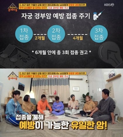 자궁경부암 예방주사에 대한 설명을 들은 딘딘은 "맞으러 가야겠다"라고 말했고 라비는 "형돈이 형 어디서 들었느냐"고 물었다. 이에 정형돈은 "이런 건 상식이다"라고 말하며 자신감을 보였다.