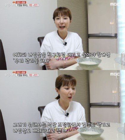 이윤성은 과자나 군것질 대신 자몽을 젤리로 만들어 먹었다. 그녀는 "저도 사실 어떤 원리인지 모르겠지만 자몽이 지방을 태운다고 하더라"며 "친구들이랑 늘 이야기한다. 어차피 나잇살을 친구처럼 데리고 살아야 한다면 `우리 관리를 하자` 그러기 위해서는 식단 조절하면서 건강도 챙기고 나잇살도 배제하자고 했다"며 자신의 생각을 솔직히 밝혔다.