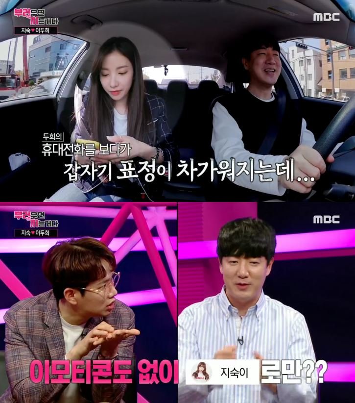 15일 방송된 MBC ‘리얼연애 부러우면 지는 거다”에서는 지숙과 이두희가 차를 타고 이동하던 중 다툼하는 모습이 그려졌다. 이날 지숙은 이두희의 핸드폰을 살피던 중 “왜 난 이거냐”라며