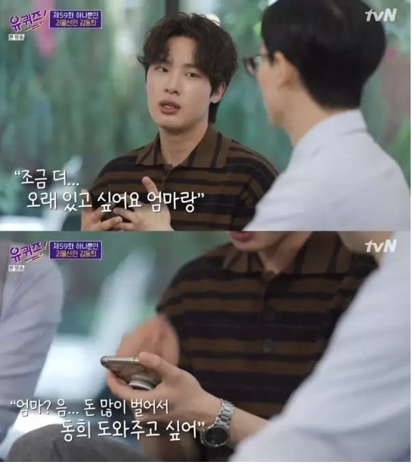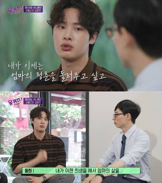 17일 방송된 tvN `유 퀴즈 온더 블럭`에서는 김동희가 자신의 이야기를 꺼냈다. 동시에 그는 자신을 위해 희생한 어머니에게 감사함을 전했다.