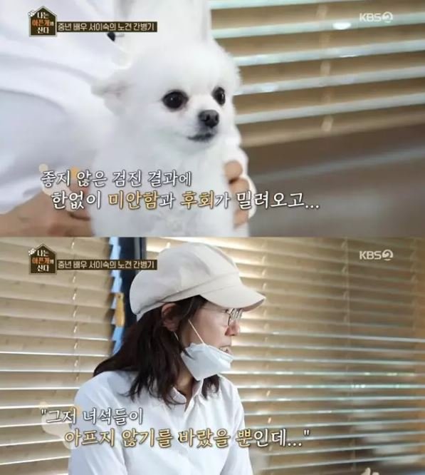 서이숙은 “나는 해마다 다르고 반려견은 하루가 다르다”라며 반려견을 데리고 동물 병원을 찾았다. 하지만 뜻밖의 검진 결과에 “이래서 눈물 나는구나”라며 눈시울을 붉혀 보는 이들을 먹먹하게 했다.