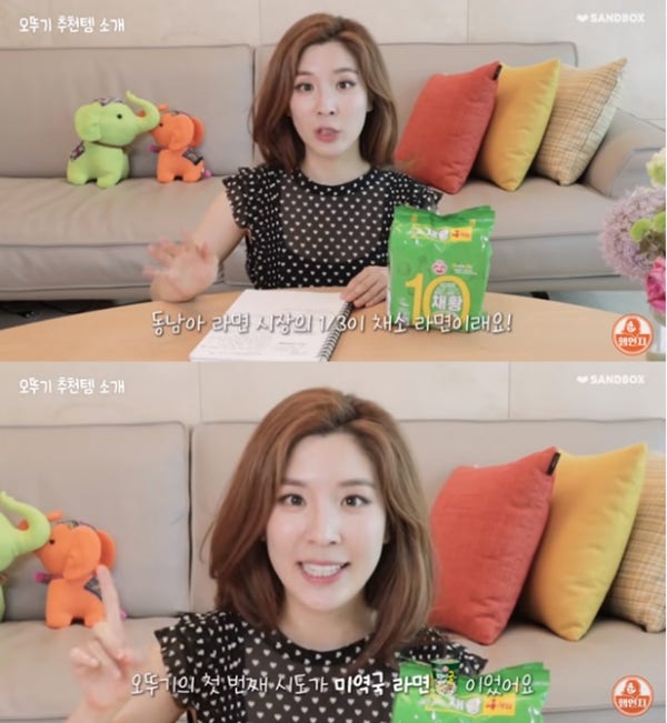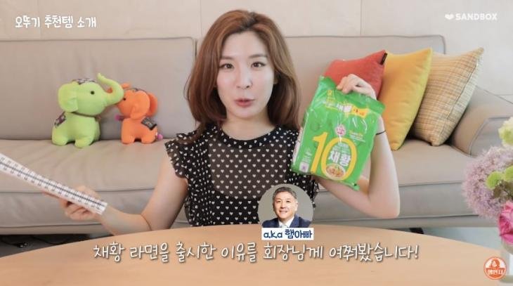 그 중에서 함연지는 채소 위주로 구성된 라면을 만들게 된 계기를 아버지에게 물어봤다며 이를 설명했다. 그녀는 "동남아는 불교 국가고 그만큼 채식을 하는 사람이 많아서 동남아 라면 시장의 1/3이 채소 라면이라고 한다. 거기서 보고 착안을 하셨다"며 "기존 제품에 부족한 영양소를 채우기 위해 시도한 첫 번째 제품이 미역이 들어간 라면이었고 두 번째 시도가 채소가 풍부한 라면이다"라고 설명했다.