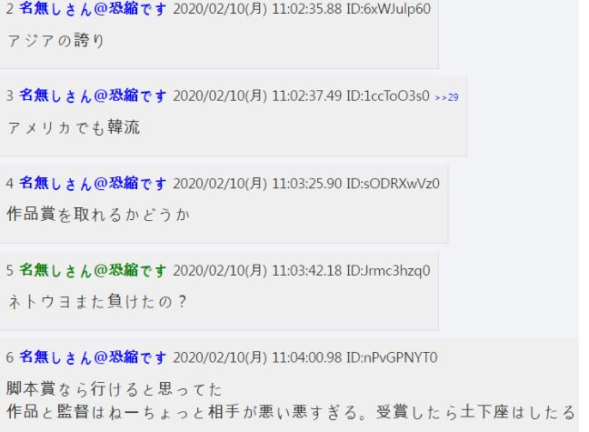 한국 영화 기생충이 아카데미 각본상을 수상했다는 소식이 알려지면서 전 세계의 이목이 모이고 있다. 그중 가까운 나라 일본의 유명 커뮤니티인 ‘5ch’ 실시간 반응을 소개한다.