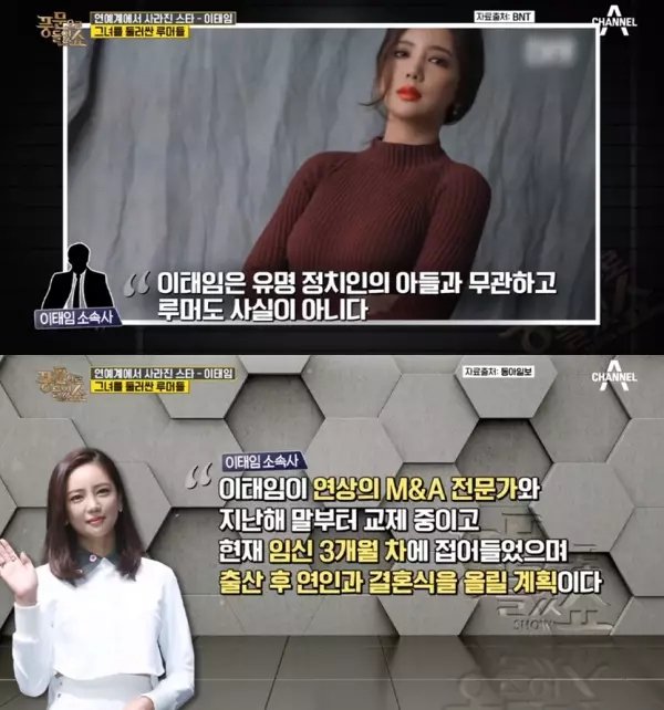 "이태임은 연상의 M&A 전문가와 지난해 말부터 교제 중이고 현재 임신 3개월 차에 접어 들었으며 출산 후 연인과 결혼식을 올릴 예정이라고 밝혔다"라고 전했다.