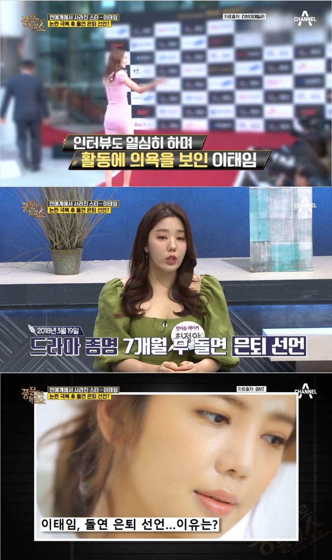 최정아 기자는 "이태임은 프로필 전부가 삭제돼 있다. 2018년 6월 경 삭제된 것으로 알려졌다"며 "프로필까지 지우는 사태를 보지 못했다. 이태임 씨가 최초인 것 같다"라고 전했다.