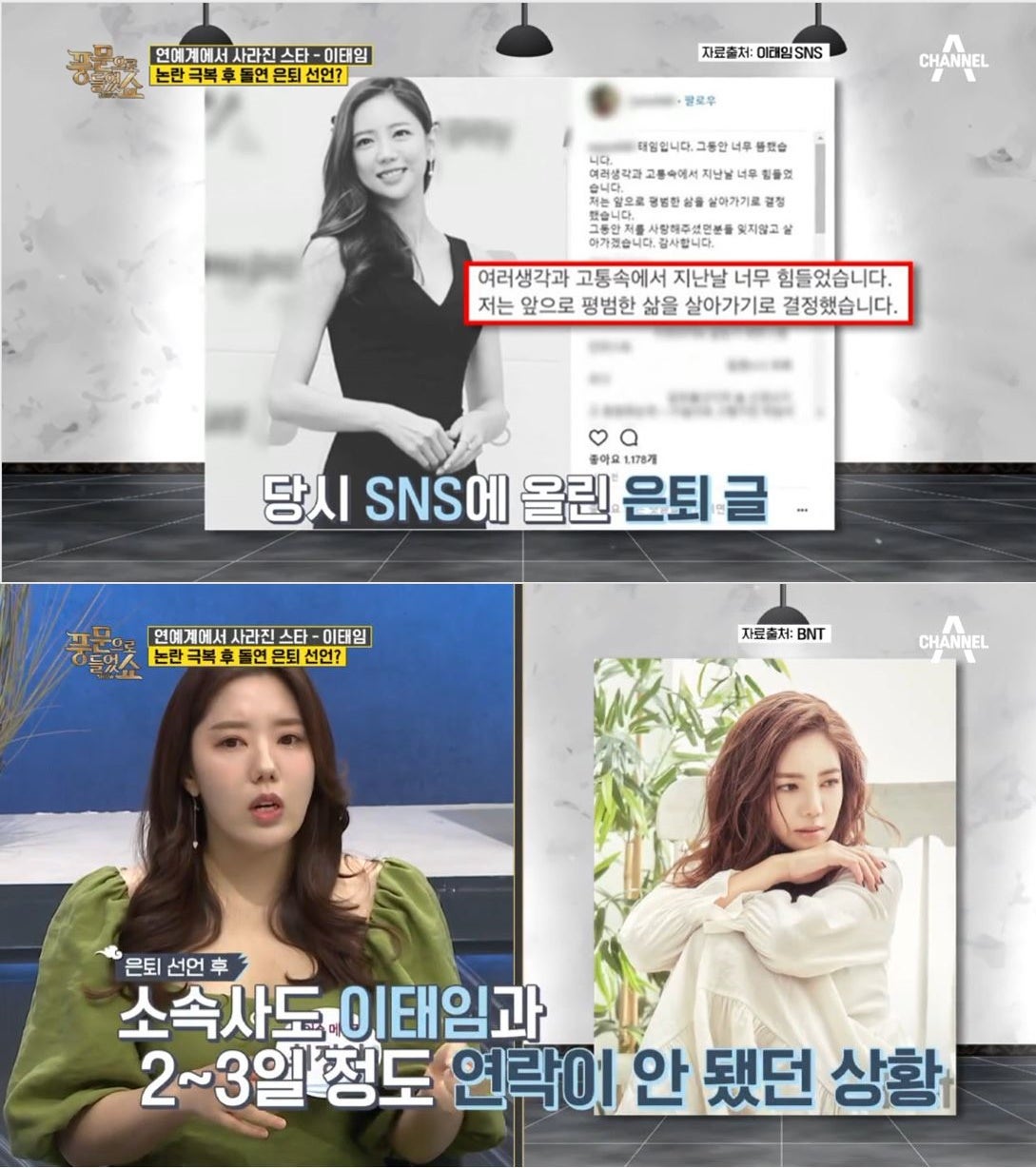 이후 이태임은 포털사이트에 자신의 프로필을 삭제했다.