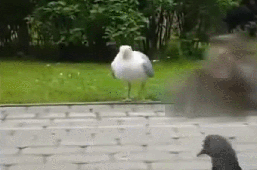 그러고 나서 갈매기가 부리에 물고 있던 쥐를 꿀꺽꿀꺽 삼키기 시작하자 촬영자는 물론 다른 행인들이 놀라움에 내뱉는 감탄사가 들린다. 그 후 해당 갈매기는 바로 옆 상점에서 어떤 사람이 나오자 깜짝 놀라 재빨리 날개를 펼치며 다른 곳으로 날아가버린다.