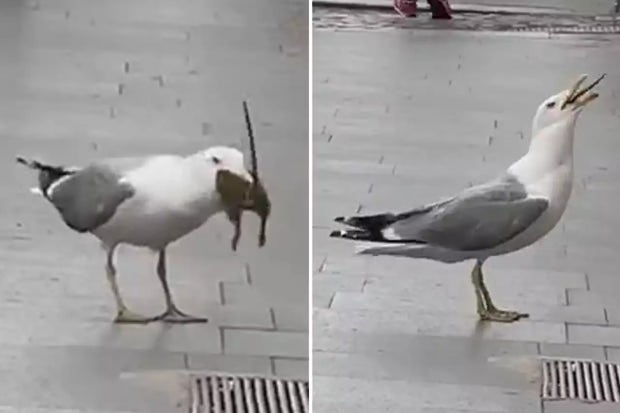이탈리아 로마 시내 거리에서 굶주린 갈매기 한 마리가 커다란 쥐를 통째로 집어삼키는 모습이 카메라에 포착돼 많은 사람을 놀라게 했다.