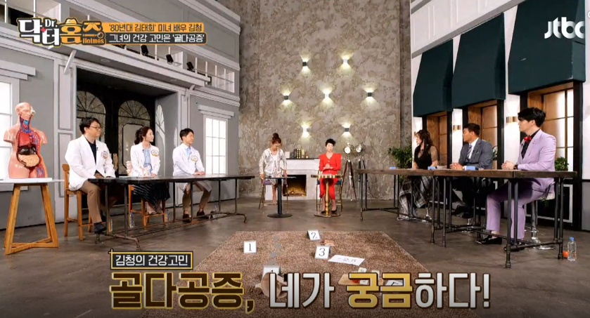 16일 방송된 JTBC `닥터홈즈`에는 첫방송 게스트로 80년대 김태희로 불렸던 배우 김청이 출연했다. 이날 신인선, 이형택, 홍지민 등의 출연자들은 김청과 건강 고민을 맞히기 위해 여러 추측을 했다.