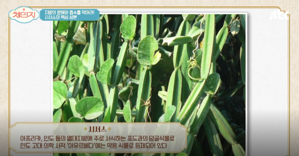 세계 3대 다이어트 식품으로 인정받은 시서스 가루는 지방세포와 탄수화물의 축적을 막아주고, 리파아제의 활성을 억제해 지방세포 분화 및 축적을 조절한다고 한다.