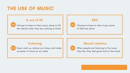 전반적으로 사무직이든 아니든 근로자의 절반에 가까운 49%가 항상 음악을 듣는 것으로 나타났다. 재택 근무자의 2/3 역시 배경음악 없이는 일하기가 더 어렵다고 답했다.