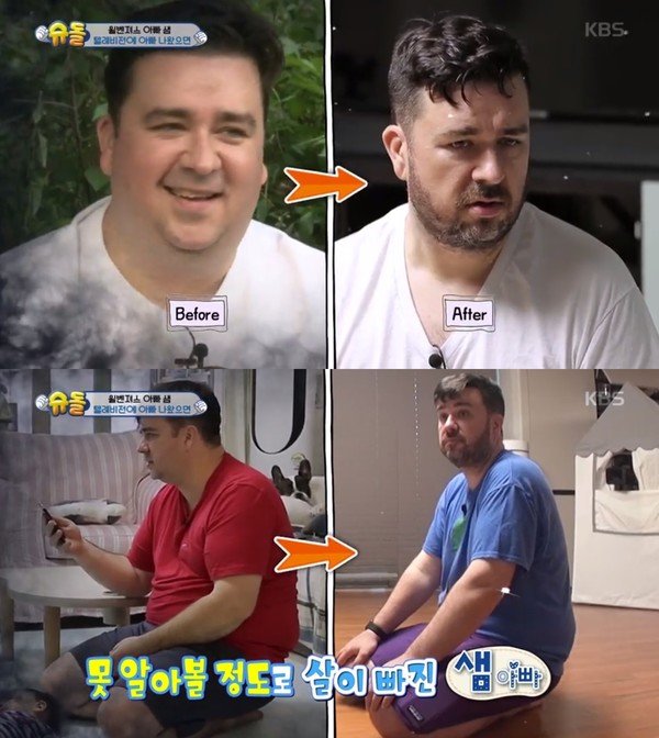 윌리엄은 "아빠 똑같은 샘 아저씨인데"라고 말했다. 샘은 "네가 봤을 땐 똑같은데 많이 달라졌다"며 "20kg 빠졌다"라며 다이어트에 성공했다고 밝혔다.