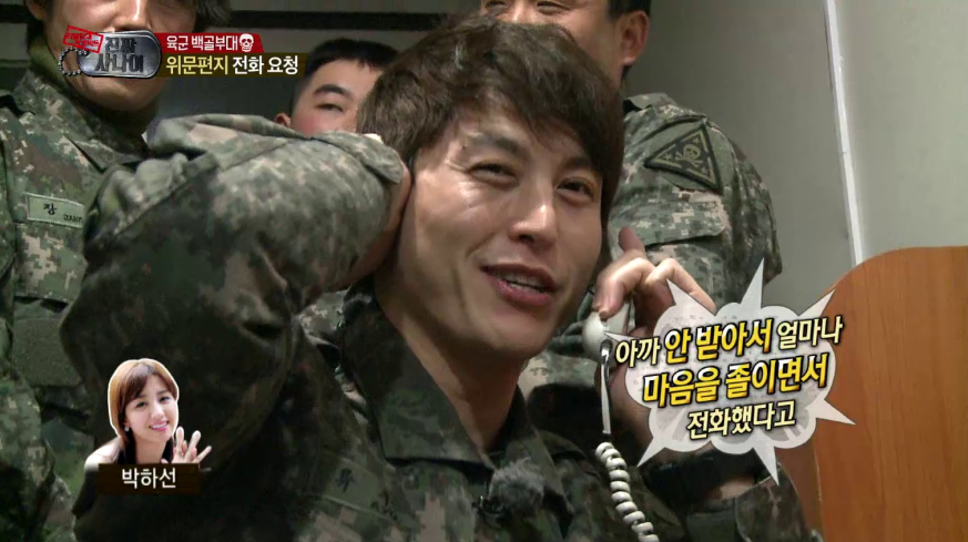 최근에는 군대에서도 저녁 시간대에 자유롭게 핸드폰을 사용할 수 있게 됐지만, 훈련소에서는 여전히 핸드폰을 사용할 수 없다. 훈련소에서 부모님과의 첫 전화는 더욱더 특별하다. 하루하루 힘든 나날을 보내다가 부모님 목소리를 들으면 눈물이 절로 난다.