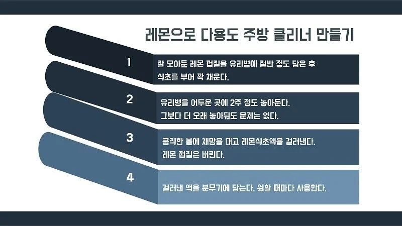 레몬으로 다용도 주방 클리너를 만들 수 있다. 이렇게 클리너를 만들어 두면 수시로 사용할 수 있어 상당히 편리하다.